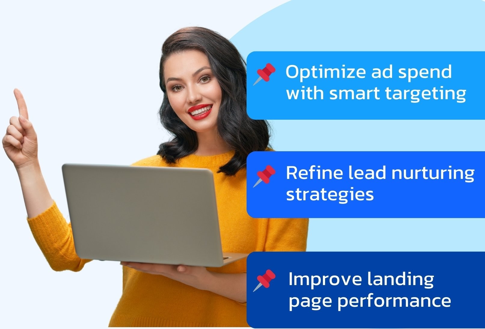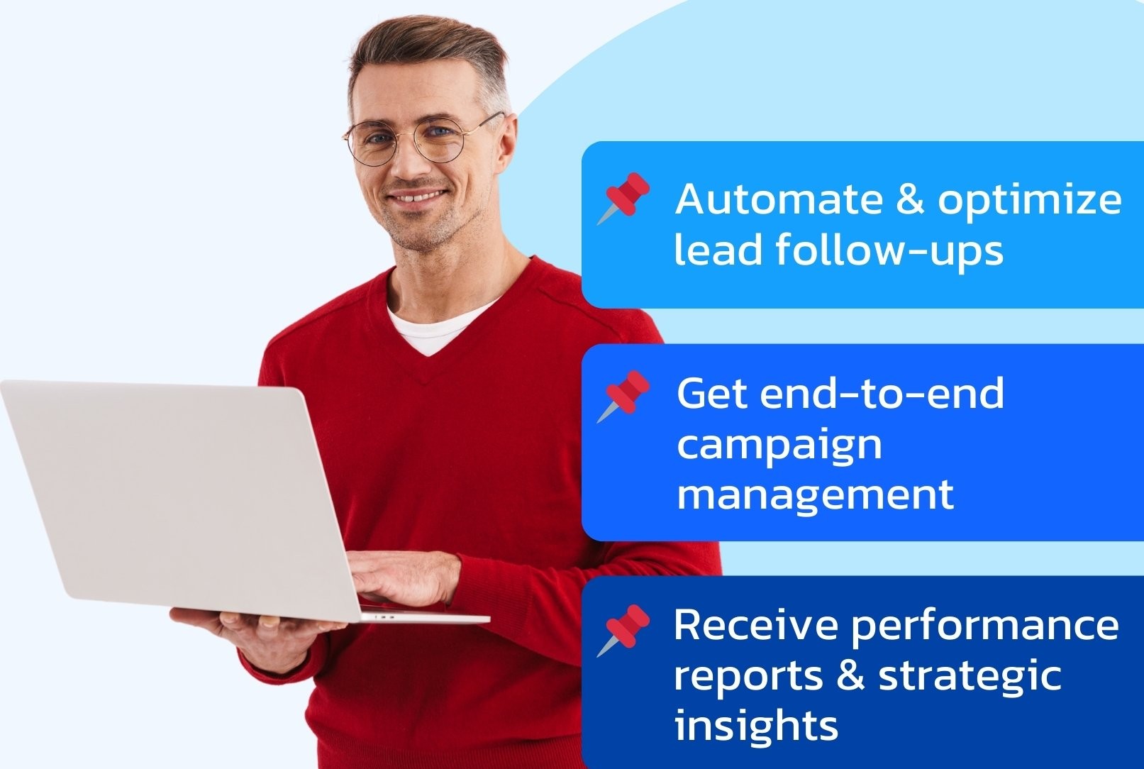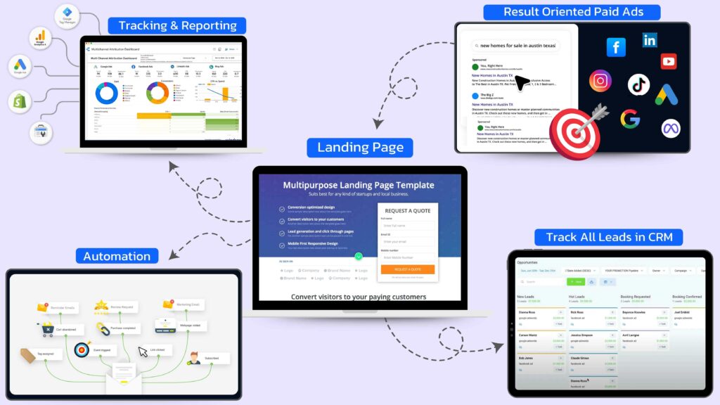 Drive conversions with a high-performing landing page, precise ad tracking, in-depth reporting, seamless CRM integration, and powerful automation.