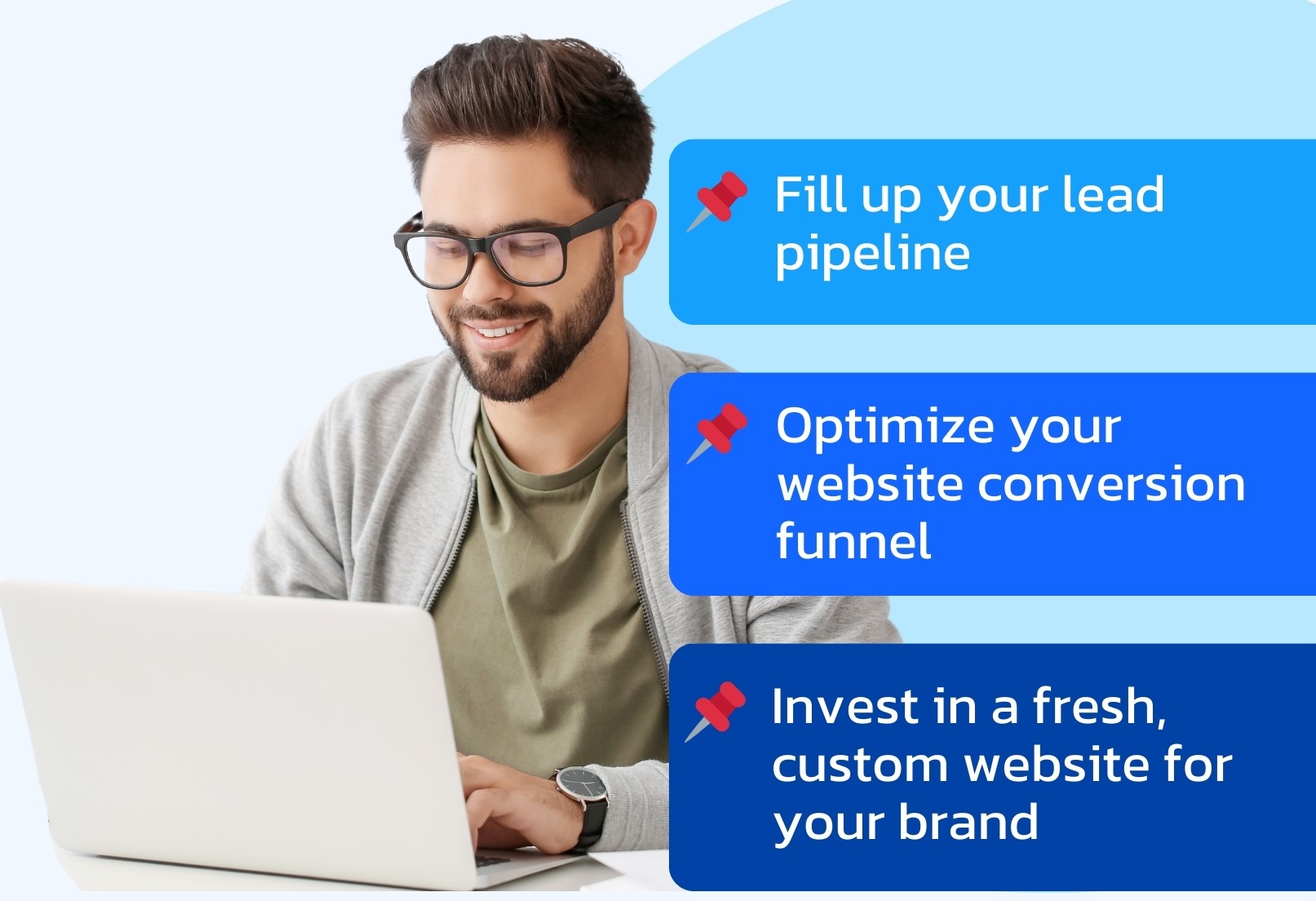 We help businesses turn visitors into paying customers through optimized sales funnels, retargeting, and conversion strategies.